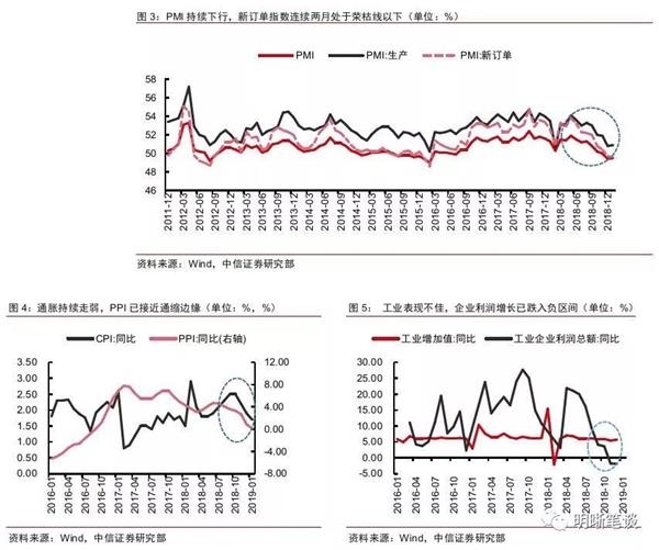 与金融数据抢眼表现形成对比的是实体经济延续走弱,金融与实体出现分化。1月制造业PMI继续走低,PMI和新订单指数连续两个月处于荣枯线以下;通胀方面,1月和PPI均低于预期,其中PPI持续下行至通缩边缘,实体经济需求端仍然处于下行趋势中。此外,2018年底工业企业利润增速也持续放缓,当前已经落入负区间,实体经济下行压力仍然较大。
