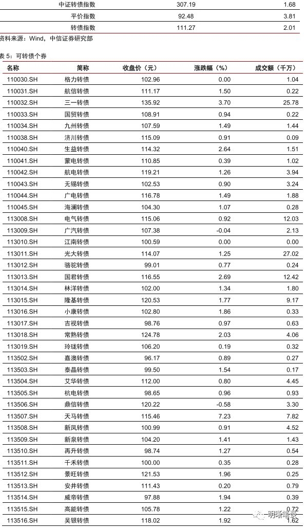 落脚到具体策略层面,依旧推荐两条主线,一方面低价标的的逆周期投资仍有尾部红利,进一步放松对溢价率的要求才能筛选出足够数量的标的,例如汽车、环保、新能源、金融、电子等;另一方面则是关注基于正股主题beta的机会,这一策略则更偏向交易层面,高弹性标的属于关注的目标区间,例如5G、猪周期、基建、消费电子相关等板块。