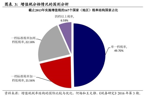 从增值税税率分档情况来看,单一档增值税税率最普遍