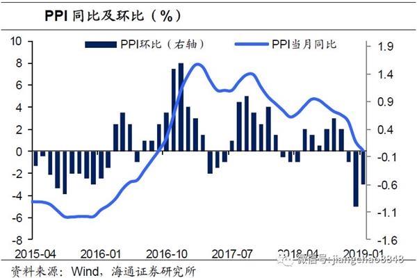 从前两月物价的走势来看,食品价格涨幅偏弱,而且由于去年同期的高基数效应,将导致CPI短期内大幅下滑。但年初以来的工业品价格环比回升,2月的PMI购进价格指数重回50%以上,我们预测2、3两月的PPI或有望低位回升。