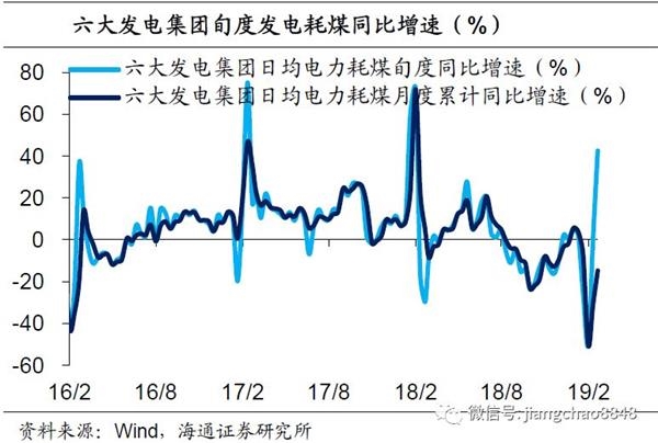 粗钢产量小幅回落,发电耗煤跌幅扩大。19年1月重点钢企粗钢产量增速2.7%,较18年12月有所回落。2月六大集团发电耗煤增速跌幅回落至-14.9%,整体来看,1-2月发电耗煤合计同比增速仅-10.2%,较18年12月跌幅明显扩大,指向工业生产恢复偏慢。