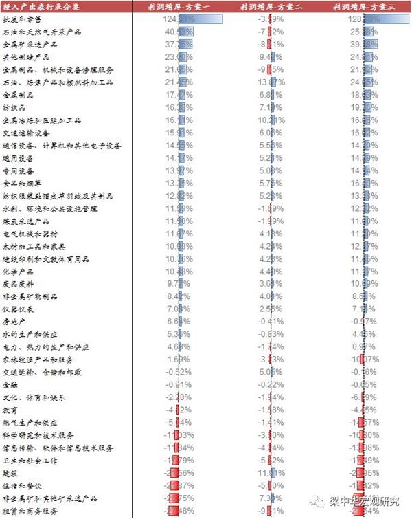 但是这种情况下,原本税率为10%的行业也会下调税率,行业受益或会再次刺激地产的过度投资,从而对企业制造业投资形成一定挤压,这便与政策的初衷有所背离。基于这一点,我们认为报告中提到的“等行业”这一词或许表明,增值税率调整的适用范围还有一定的收放空间,因此我们测算了另外两种方案。