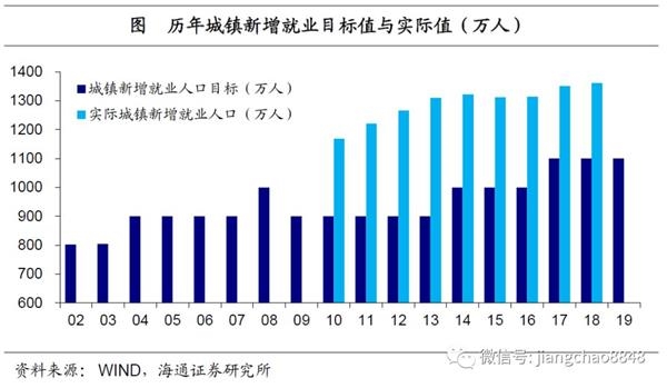 保增长合理区间,稳就业位置突出。19年增速目标6.0-6.5%,较18年下调,时隔3年再现目标区间。19年增速目标3%,与过去4年保持一致。报告强调当前和今后一段时间就业总量压力不减,结构性矛盾凸显,19年首次将就业优先置于宏观政策层面,城镇新增就业目标1100万人,与过去2年保持一致,城镇调查、登记失业率目标为5.5%、4.5%,并强调“力争达到近几年的实际规模”。19年是全面建成小康社会的关键之年,做好经济工作至关重要,“确保经济运行在合理区间”取代“深入推进供给侧结构性改革”成为第一大工作目标,而稳增长首要就是保就业。