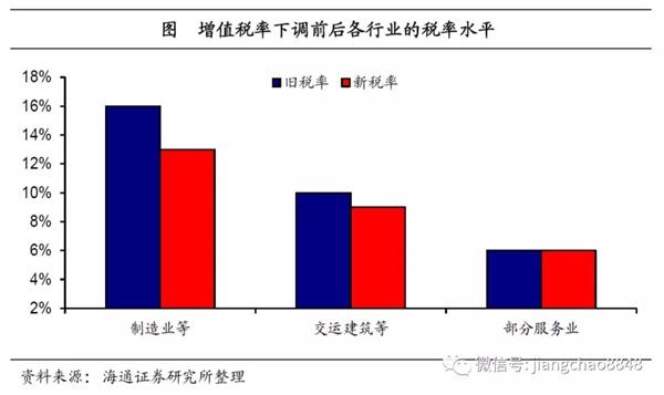 增值税率再度下调。总理在19年政府工作报告中指出,将制造业等行业增值税率从16%进一步降至13%,下调3个百分点,交通运输、建筑业等行业增值税税率从10%降至9%,下调1个百分点,而部分服务行业6%一档的税率保持不变。