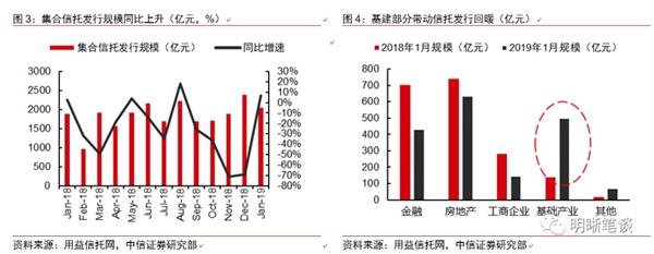 货币政策相对宽松,宽货币背景给信托贷款回暖提供空间。央行在2018年第四季度货币政策执行报告中去掉了关于“中性”和“把好货币供给总闸门”的表述,强调了逆周期调节,货币政策出现边际放松。信托产品中单一信托产品占比较大,资金面受到银行的约束,从历史数据来看货币市场流动性与新增信托贷款变化相对同步。2019年1月,央行现金净投放量为14,300亿元,较上月增加11,655亿元,新增信托贷款规模应声上涨。