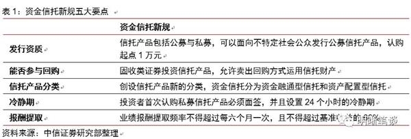 信托新规对信托贷款增速企稳将起到一定的积极作用。资金信托新规提出5大重点补充内容。据证券时报等媒体报道,为对标资管新规相关要求,监管部门正抓紧制定或修订信托行业相关监管制度。由银保监会信托部正在制定的《信托公司资金信托管理办法》(资金信托新规)进一步梳理并明确了具体业务的监管规则,目前已经结束对各省级银监局的征求意见阶段。根据媒体披露,该办法主要包括五大要点:信托产品将被纳入公募,认购起点1万元;信托产品将创设新的分类;投资者首次面签认购私募信托产品将设置24个小时冷静期;固收类信托产品将允许卖出;报酬提取也有细化要求。