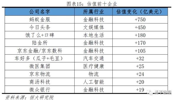 当平台生态型与技术驱动型相结合,将发挥更大作用。从估值变化来看,蚂蚁金服和今日头条变化最高,估值分别增长了750亿美元和450亿美元。除了依靠平台建立的大量用户基础和资本关系、选择正确赛道,运用大数据、人工智能等新兴技术手段是令其保持优势的关键。且科技性能在企业运营后期更重要,估值前十企业80%以上离不开技术属性。