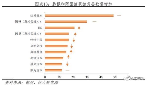 从结果端来看,阿里巴巴和腾讯对独角兽带动作用更强。据不完全统计,2018年腾讯共捕获30家中国独角兽,与去年持平,包括小红书、车好多、快手、猿辅导等细分领域头部企业。阿里巴巴快速提升,从第七升至第四,全年共包揽17家独角兽,包括今日头条、小猪短租、旷视科技、商汤科技等。