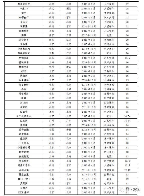 其次,被列入重大发展项目的例如大数据、人工智能等行业,虽然企业数量有所增加,占比却有所下滑,这些领域的发展速度不及独角兽整体的发展速度。例如人工智能行业共7家,较上期增加1家,占比却下滑0.35个百分点。