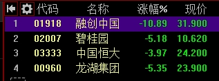 在本周五H股下午3点30之后,内房股尾盘出现集体跳水迹象。其中,跌近11%,创2015年8月以来最大跌幅,碧桂园跌超5%领跌蓝筹,恒大、等多股跌近5%。