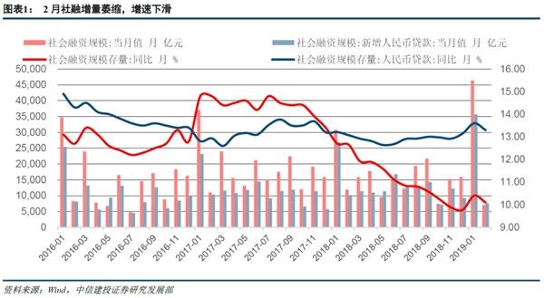 从增速来看,1月份社融存量增速反弹至10.4%,其中人民币贷款存量增速反弹至13.6%,2月份的社融不及预期使得重新反弹的增速再次回落。但从环比来看,2019年前两月的社融增速相较于2018年底还是有一定改善。易纲行长指出,前两月的数据存在季节性因素,需要做汇总观察,3月金融数据将更加值得期待。