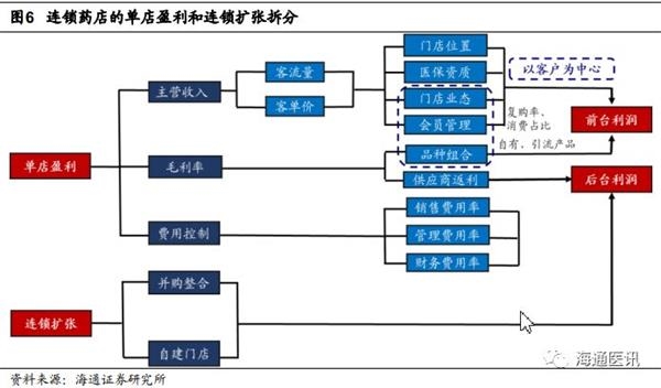 为了回答以上行业共性问题,海通医药团队从产业的实际运营和发展情况出发,对医药连锁业态的商业模式进行分析,定义了自上而下的分析框架,以此回答关键性问题:连锁医药子业态之间有什么异同点,决定成长为龙头甚至巨头的核心竞争力是什么,对应标签公司下一步发展策略又是什么?