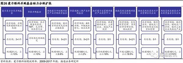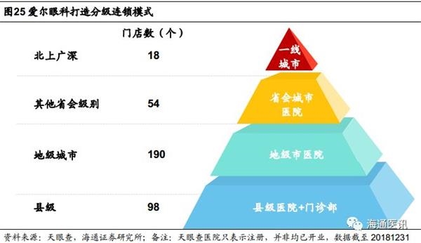分级连锁塑造品牌,并购基金助力扩张。与历史悠久、实力雄厚的公立眼科医院如北京同仁、中山眼科、复旦耳鼻喉等深耕区域市场积累口碑相比,爱尔眼科的品牌塑造路径为跨区域多点布局、覆盖广大人群,并凭借专业的服务迅速地培养品牌,成为民营眼科中唯一的全国性品牌企业。爱尔眼科自2014年成立多个并购基金以来,加速扩张提前实现产业链卡位,打造4级分级连锁机制,一线城市医院定位国际一流水平,省会定位疑难杂症诊疗中心,地级市定位当地领先,县级医院定位基层眼科中心。鉴于爱尔眼科医院的良好复制性,分级连锁和品牌塑造之间形成了正反馈。