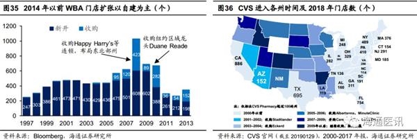 新建和并购共同决定企业的规模扩张能力。规模效应的前提是规模,连锁药店企业通过新建和并购扩张门店版图。我们认为,连锁药店的扩张能力本质上是其区域资源锁定的能力,参考美国连锁药店巨头WBA和CVS,无论是新建门店在当地强势市场继续加密,还是凭借优秀的并购整合能力在异地跑马圈地,均是实现规模扩张的重要途径。