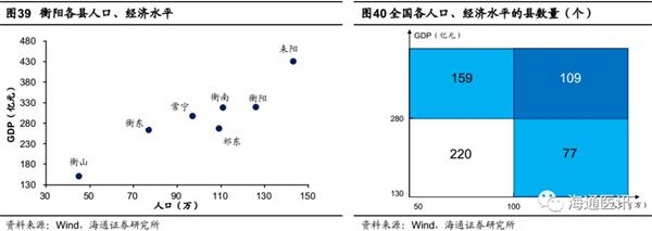 县级医院全国布局成熟可再造一个爱尔眼科。参照湖南耒阳县级医院和武汉青山区门诊部,我们假设未来同等人口、经济水平的县可达到相等水平:我们假设成熟期的县级医院、门诊部预计2000万、800万元,净利率对应20%、25%。根据衡阳地区情况,假设人口大于100万且大于280亿元的县可布局1家县级医院,人口大于50万或GDP大于280亿元的县布局1家门诊部,则全国未来可布局109家县级医院、456家门诊部。在当前市场需求下,成熟布局的县级市场将为爱尔带来58.28亿元营收、12.75亿元净利润。参照2017年经营状况,县级市场布局成熟将在营收和盈利上再造一个爱尔眼科。