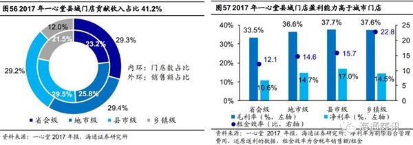 县域市场是连锁药店下一步新建+并购的优选区域。相对地市、省会市场竞争激烈和过高的并购对价,县域市场整合潜力较大。2017年县域市场药店销售额占全国的32%,部分省区甚至接近一半的销售来自县域药店。县域大多数当地药店在经营管理、人员素质、商品品类等相对大型连锁药店的差距较大,大型连锁药店的县域门店竞争优势和盈利能力优异,以一心堂为例,2017年县域门店共贡献收入41%,其中县市级门店毛利率近38%,净利率高达17%,为最赚钱的店群结构;乡镇级门店毛利率及净利率亦名列前茅,且租金效率达22.8,高于第二名的县域门店45%。