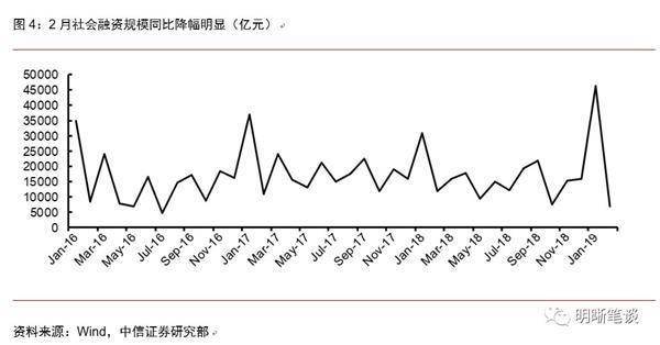 表内表外融资乏力,社融不及预期。2月社融增量为7030亿元,比去年同期少4847亿元,远低于预期,同比增速下滑至10.1%。受地方政府债提速影响,2月地方政府专项债融资增加较明显虽然对社融形成一定的支撑,但是社融各分项同比增量多数出现下降,人民币贷款少增2558亿元,同时1月份表外融资回升并未持续,非标融资仍保持缩减趋势,2月委托贷款降幅有所收窄,信托贷款与未贴现银行承兑汇票降幅继续扩大,导致社融增速不及预期。