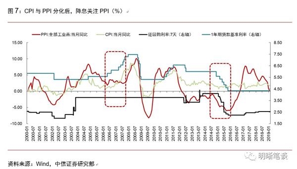 实际上,降息更加关注PPI。在2011年以前,PPI与CPI走势趋于一致,而PPI与CPI的分化最为明显的时期是2016年~2017年,上游供给收缩带来涨价与下游需求弱并存,PPI上行而CPI平稳,这一阶段央行曾连续降息以稳经济,其原因在于PPI深度为负。而展望2019年,上游需求不足预计PPI下行,而下游猪价上涨预计拉动CPI上行,CPI与PPI预计将再次出现明显分化,那么预计PPI将成为降息的关注点。