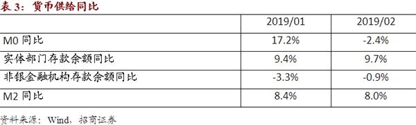 2月M1同比增长2.0%,前值0.4%。剔除掉M0之后,2月非金融企业活期存款余额同比上涨2.8%,前值同比下降2.2%。