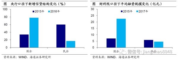 比融资贵更为严峻的是融资难。从央行公布的投向结构数据看,14年以来,民企新增贷款占比逐年下降,从13年的60%以上,降至16年的不足20%,而国企则从30%左右上升到80%左右。从中国财政科学研究院数据看,国企平均融资规模从15年的7.15亿元上升到17年的22.54亿元,而民企则从5.99亿元下降到4.6亿元。