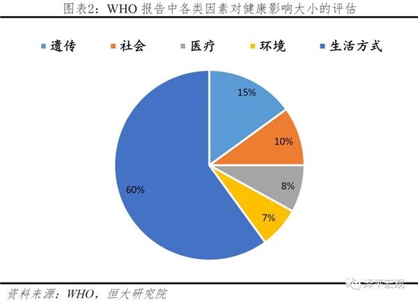 基于目前的医学认知水平,寿命主要由五大因素决定:遗传差异、环境因素、生活方式、医疗条件及社会化因素。WHO在一份统计调查报告中指出,在影响健康寿命的各类因素中,生活方式(饮食、运动及生活习惯)占60%,遗传因素占15%,气候环境占7%,医疗条件占8%,社会化因素占10%,因此“健康寿命60%取决于自己”。这一观点肯定了个人在健康寿命上的主观能动性,在国内外广为流传。但应同时看到,遗传、环境、医疗及社会等因素仍然有40%的影响,不可低估。