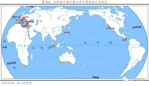 从全球来看,冲绳、撒丁岛等世界公认的长寿地区均靠近海洋、阳光充足,且与地中海气候分布有一定的关联性。