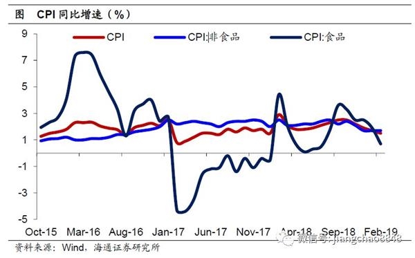 2月CPI同比小幅回落,主要是因为春节错位效应导致环比涨幅不及去年同期。3月以来物价降幅趋缓,CPI同比或将重返2%以上。今年影响物价走势的关键因素仍然是猪价。由于猪瘟影响,近两个月生猪集中出栏导致猪肉短期供给增加,对猪肉价格上涨产生压制。但是目前生猪存栏量仍在持续下降,猪肉价格面临不小的上涨压力,如果未来猪肉价格受到供给减少的影响而持续反弹,那么食品CPI同比或回升至4-5%左右。但是考虑到上半年经济仍有下行压力,需求疲软制约下,CPI同比难以突破2.5%,通胀风险有限。
