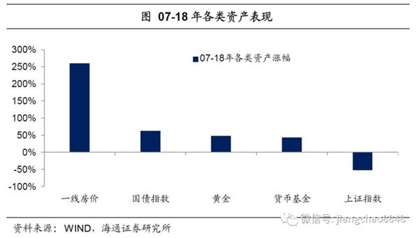 从07年到18年,中国一线城市房价平均涨幅为2.6倍,而上证指数代表的股市跌幅高达50%,房市的表现远好于股票、债券、黄金和现金,是国内资产配置的最大赢家。虽然今年A股已经涨了20%,大家的第一反应就是涨太多该卖了。尤其是当前的经济数据并不好,加上两融余额迅速回升,有观点认为现在又是新一轮杠杆牛,上涨并不可持续。如果我们说这是新一轮大牛市的起点,相信很多人会嗤之以鼻。