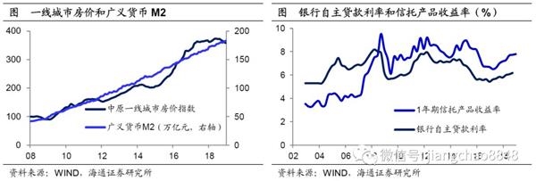 货币超发有利房市、利率高企不利股市。而过去10年中国房价上涨的原因也和美国60/70年代一样,也是因为货币超发。在07年中国的广义货币M2大约是40万亿,而目前已经超过180万亿,货币总量增加了3倍多,这差不多就是同期全国房价的平均涨幅。因为货币高增导致了胀预期,所以房市的估值不停提升。而高通胀预期带来了高利率,中国过去的影子银行差不多可以提供10%左右的准无风险收益率,这就使得股市的吸引力大幅下降、估值大幅压缩。