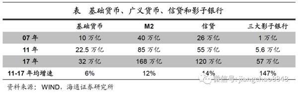 货币为何超发?非为央行,而是影子银行。谈到中国的货币超发,大家第一反应是和央行有关。但其实央行所控制的基础货币只占广义货币的20%,而且基础货币只在金融体系运行,并不直接参与实际经济活动。因此,央行只是提供了货币发行的种子,真正的货币超不超发其实是在于商业银行层面的广义货币。