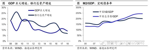 在宏观上,杠杆率是一个比率关系,等于债务和GDP的比值。在过去10年中国的债务杠杆率逐年上升,不可持续,所以才有了后续的去杠杆。但是在经过两年的去杠杆之后,我国的货币和债务增速大幅下降,到去年年末我国的宏观杠杆率已经开始企稳了,也就是货币和债务增速已经和GDP名义增速大致匹配了。
