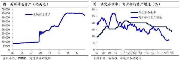 重建货币循环,首先央行输血。但是这个稳杠杆的过程是如何发生的?我们可以把中国经济看做是一个肿瘤病人治病的过程,首先关掉了影子银行,相当于我们做手术切掉了恶性肿瘤,但是手术以后人体比较虚弱,就需要外部输血维持生命。而对于经济而言,这个外部输血其实就是央行出面来提供基础货币。比如说美国在08年金融危机发生之后,美联储的总资产从不到1万亿美元升至最高的时候接近5万亿美元,而中国央行在过去一年持续大幅降准也是一样的作用。