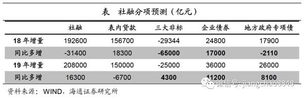 融资堵偏门、开正门。但光靠央行降准,还不足以重建货币循环。过去一年中国的社会融资大幅下降,原因在于三大非标融资的大幅萎缩。我们监管影子银行是绝对正确的选择,但是影子银行的很多融资其实是真实的需求,所以我们需要开融资的正门,将这些融资需求阳光化。比如我们用低成本的地方政府专项债来替换政府隐性债务,用企业债券来替换民企和地产企业影子银行的融资,用股市来释放股权融资。如果19年的企业债和地方政府专项债能够大幅放量,而影子银行的收缩速度不变,那么19年的社会融资总量将有望改善。