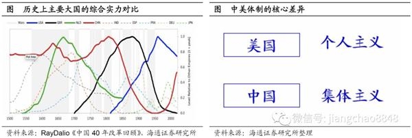 中美差异:个人主义与集体主义。达里奥近期写了一篇回顾中国改革开放40周年的文章,在文中他把历史上的主要大国的综合实力做了对比,发现中国在过去2000年的大部分时间都是领先的,只是在过去的200年短期落后,但是在最近的40年又开始奋起直追。美国体制的核心是个人主义,而中国体制的核心是集体主义,达里奥认为历史证明中国的集体主义决策模式在绝大多数时期都是领先的。在美国的个人主义模式下,当宏观决策和微观现实发生背离时,可以用选票来进行纠错,那么中国的纠错机制在哪里?