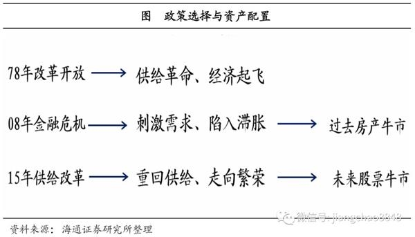 从凯恩斯到里根:美国80年代股市、房市大逆转。美国在60、70年代也曾经历飞涨、股市近20年不涨。但80年至今,却是股债长牛、房产跑输现金。其原因在于,70年代美国靠凯恩斯主义刺激需求,结果产生了滞胀,超发对房价有利,而高抑制了股市估值。而里根在80年以后将政策转向供给学派,一是收缩了货币增速、大幅降低了水平,这对房市不利而对股市有利,二是大幅减税,提高了企业盈利,两者共同带来40年美股大牛市。中国穷则思变:从4万亿刺激到供给侧改革。中国过去房价大涨,源于08年4万亿之后走上了举债发展之路,货币超发直接推高房价,而由此导致的高利率对股市不利。但是由于债务率见顶,我们也在15年转向了供给侧结构性改革,这其实类似于美国里根的供给学派改革,因此也会带来资产配置的巨大变化。