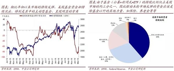 美股年初以来反弹与资金流出明显背离。对于美股而言,一个有意思的迹象是,相比年初以来市场的持续反弹,美金资金却持续流出(特别是主动型基金),呈现明显的背离。一个可能的解释是,由于基金(公募+封闭式+ETF)的持股比例仅占美股市场的约三分之一,因此驱动本轮市场反弹的资金应该是除基金以外的其他力量,如保险、养老金等等。从历史经验来看,市场大跌后的反弹过程中,资金的回流往往均相对滞后,例如2015年10月、2016年初等,而此次的背离更为明显。