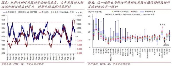从新兴相对发达(美股)的资金轮动来看,由于美股的大幅回流和新兴流出的扩大,近期已经出现明显逆转,而这一逆转也与新兴市场相比美股估值优势的反转所反映的方向是一致的。