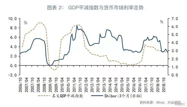 我们曾在发表于2018年10月22日的报告《增长与物价角力下的货币政策—货币市场与流动性周度观察2018年第25期》中指出:从央行的表态来看,综合反映CPI与PPI变化的名义平减指数更有可能是货币当局关注的物价指标。