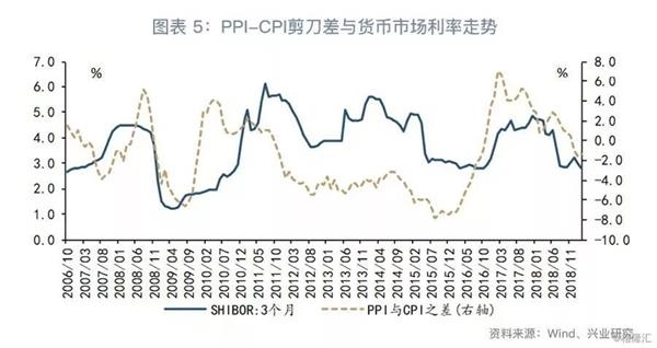 在发布于2019年3月9日的报告《CPI或已到短期底部—评2019年2月通胀数据》中我们指出:CPI或已到短期底部,未来几个月可能温和反弹;年内PPI同比转负的风险仍然存在。CPI与PPI背离的走势未来几个月或仍将延续,PPI-CPI剪刀差或将继续维持在负值水平,因此未来货币市场利率易下难上。