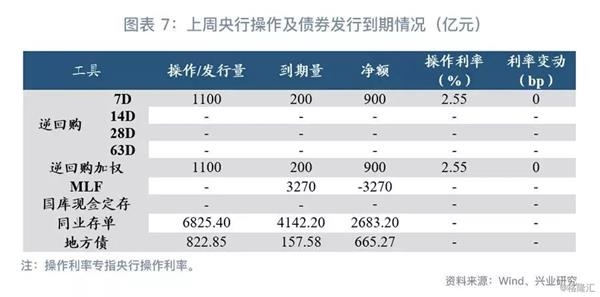 上周央行开展1100亿元逆回购操作,有200亿元逆回购和3270亿元MLF到期,公开市场实现净回笼2370亿元。截至上周末,逆回购余额1100亿元。