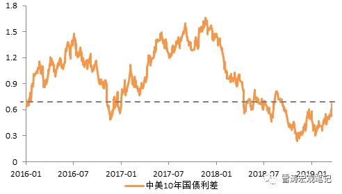3月美联储议息会议正式确认货币政策转鸽,欧、美数据大幅不及预期,去年中美经济周期错位带来的压迫感今年将有所缓和。随着10年美债收益率快速回落至2.5%以下,中美10年国债利差已经回到60bp以上,是过去6个月以来的最大值,也给2季度国内利率打开下行空间。