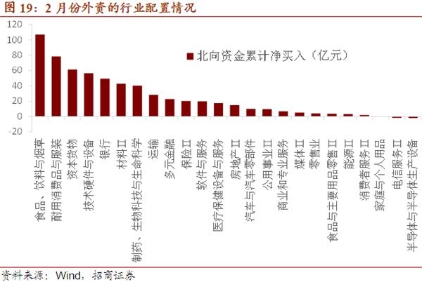 从外资的行业配置情况来看,2月份白酒、家电仍是最受外资青睐的行业,而外资对医药板块的增持明显提升。