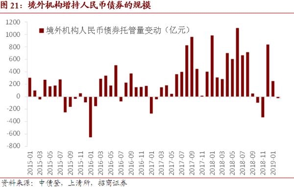 2月份境外机构主要减持的券种还包括同业存单,单月共减持同业存单101亿元,存单收益率的明显下降可能是重要的原因。