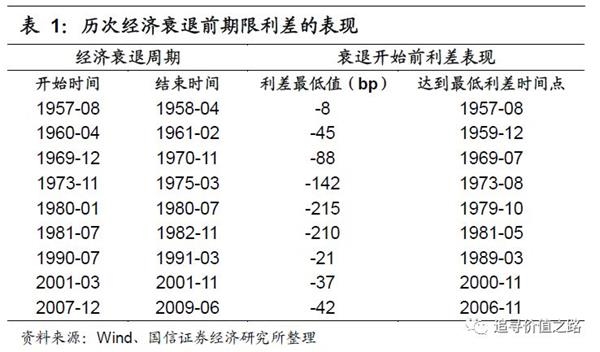 与单纯关注相比,期限结构(或长短期国债利差)对经济周期有更好的预测效果,并且该结论已经得到了学术上的认可和事实的验证。根据流动性溢价率理论,长期债券的利率等于长期债券到期之前预期短期利率的平均值与随债券供求状况变动而变动的流动性溢价之和,在大多数经济运行正常的环境下,利率期限结构应该呈现正向,即长期利率相较于短期利率有流动性溢价补偿,但在预期远期利率大幅下行的情况下,也很可能出现期限结构的倒挂(期限利差小于0)。