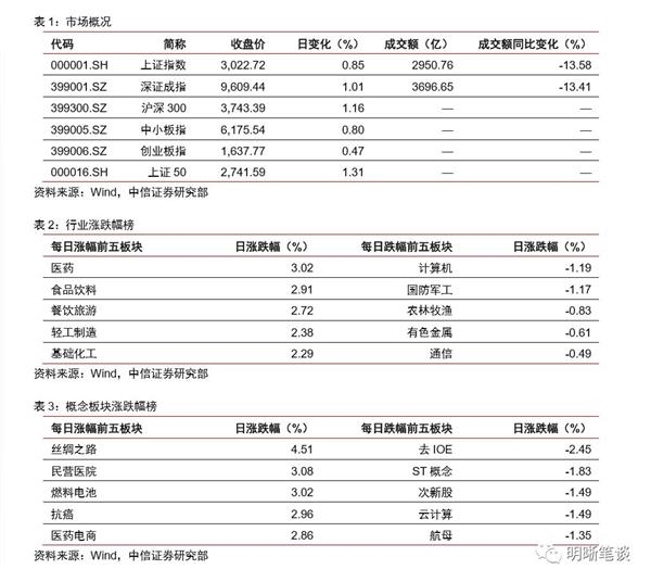 2019年3月27日,银行间加权利率大体上行,隔夜、7天、14天、21天和1个月分别变动了-5.11bps、7.55bps、6.05bps、-7.53bps和59.40bps至2.49%、2.80%、2.93%、3.02%和3.80%。国债到期收益率涨跌互现,1年、3年、5年、10年分别变动-0.37bps、-1.60bps、0.09 bps、2.49 bps 至2.47%、2.72%、2.99%、3.09%。上证综指收涨0.85%至3,022.72,收涨1.01%至9,609.44,收涨0.47%至1,637.77。