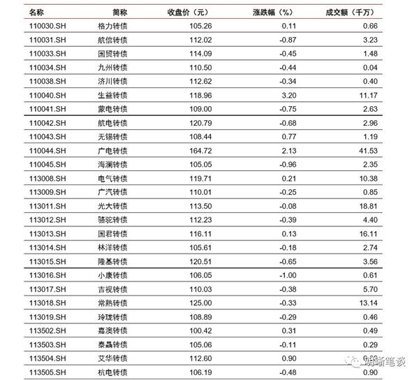 具体标的方面,对已经满足或者正在触发赎回条款序列中的标的,我们向投资者重申逐步兑现收益的建议,也会逐步将这类标的移出我们的组合。建议重点关注长证转债、天康转债、旭升转债、国祯转债、光华转债、百合转债、航电转债、海尔转债、凯发转债、岭南转债以及银行转债。