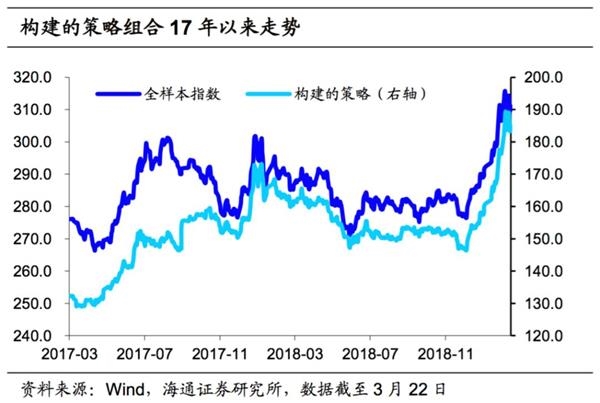 回溯之后发现,17年4月以来(16年到17年3月间无数据),该策略的涨幅达到46%,同期转债全样本指数上涨了15%,中证转债指数上涨了17.5%。19年以来该策略涨幅达到31%,同期转债全样本指数上涨了14.5%,中证转债指数上涨了19%。整体来看,该策略近几年来的效果较好。