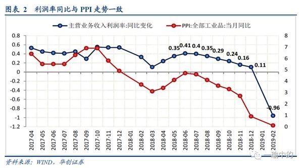 生产与价格走弱拖累利润增速转负,春节错位加剧波动。1-2月规上工业企业营业收入同比增长3.3%,增速较2018年全年8.6%的增速回落5.3个百分点;利润总额同比下降14%,降幅较去年12月进一步加大12.1个百分点。从量、价、利润率三维度拆分来看,开年工业生产继续走弱,再叠加春节错位扰动下,1-2月同比增速较去年全年回落0.9个百分点至5.3%;价格方面,高基数下1-2月PPI同比连续两个月持平在0.1%左右,相较去年全年3.5%的增速大幅走弱;利润率方面,价格走弱带动营业收入利润率同比降低0.96个百分点至4.79%,而去年全年为同比提高0.11个百分点。整体来看,经济跟随生产寻底叠加价格大幅走弱,开年利润的负增在预期之内,但1-2月同比降幅达到两位数部分归因于春节错位的扰动。统计局在数据解读过程中提到,扣除春节因素,利润同比持平略降。