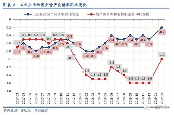 国企杠杆去化速度继续放缓,私企被动加杠杆。1-2月全部规上工业企业资产负债率56.9%,同比降低0.2个百分点,较去年0.5的同比降幅明显放缓;其中国企资产负债率同比下降1个百分点,而去年国企去杠杆的速度基本保持在1.5-1.6个百分点的同比降幅附近,国企杠杆去化的放缓或与当前利润增速的转负相关。1-2月私营企业资产负债率58.2%,较去年年末上升1.8个百分点。根据整体和国企杠杆同比变化情况推测私营企业杠杆率同比上行。这一变化与当前制造业投资和民间投资大幅放缓相背离,或意味着在当前利润下行、回收账款周期大幅拉长背景下,私企面临被动加杠杆的可能。1-2月应收票据及应收账款平均回收期为57.5天,同比增加4.6天,而去年全年为同比增加0.3天。从私营企业资产和负债增速来看,私营企业资产增速并未显著扩张并持续放缓,经济仍在寻底、外围经济下行仅仅是开始,当前时点谈私营企业主动加杠杆还为时尚早。