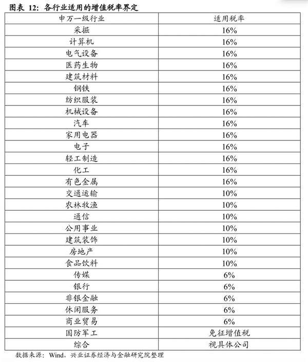 对于当前A股各行业适用的增值税率界定